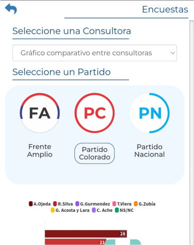 Contamos con la infromación de todas las consultoras para que puedas visualizar e interactuar con la evolución de opinión pública para cada candidato.